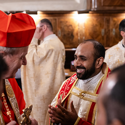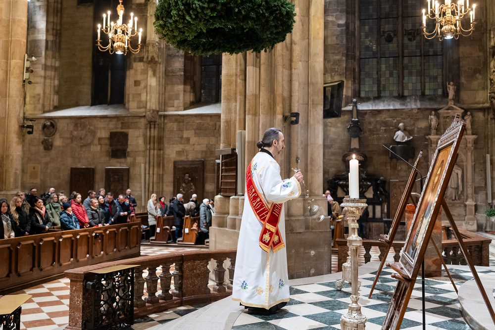 Der Wiener Erzbischof, für den angesichts seines 80. Geburtstags im Jänner demnächst ein Nachfolger ernannt werden dürfte, ist seit drei Jahrzehnten auch Ordinarius und somit Letztverantwortlicher der mit Rom verbundenen Kirchen. Deren Vertreter, angeführt vom zuständigen Generalvikar Yuriy Kolasa, würdigten Schönborns Verdienste bei einer vom Ostkirchenordinariat organisierten Feier im byzantinischen Ritus - der Göttlichen Liturgie des heiligen Johannes Chrysostomus. Wir waren mit der Kamera dabei.