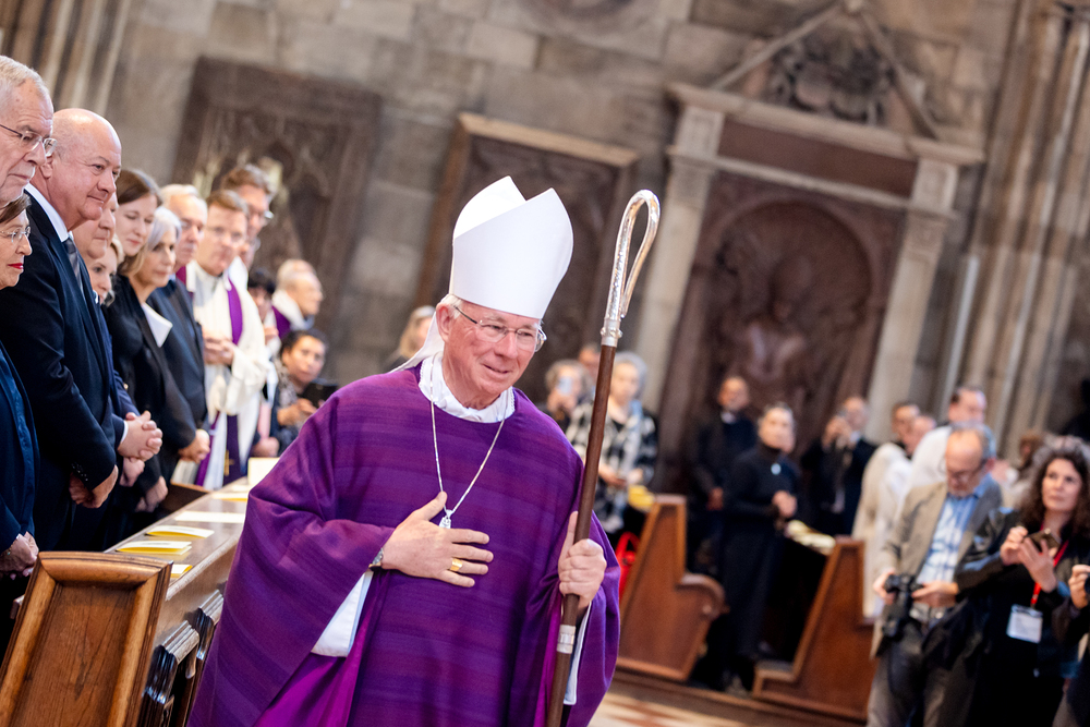 Mit einem "Requiem für seine Heiligkeit Papst Franziskus" nahm Österreich am Montagabend offiziell Abschied vom Papst. Dem Gottesdienst stand der Vorsitzende der Österreichischen Bischofskonferenz, Erzbischof Franz Lackner vor. Mit ihm konzelebrierten die heimischen Bischöfe. Die Politik war an erster Stelle von Bundespräsident Alexander Van der Bellen und Bundeskanzler Christian Stocker vertreten. Zahlreiche Gläubige gaben dem Papst im vollen Dom ebenfalls die letzte Ehre